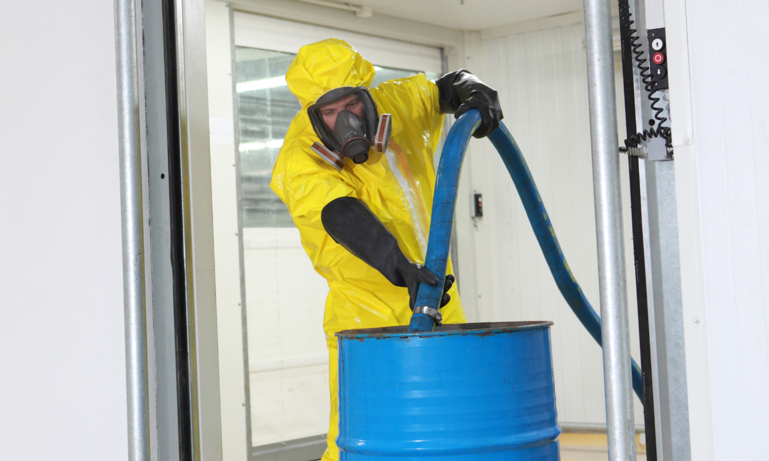 Trabalhador utilizando EPIs para manusear produtos químicos na indústria. Fonte: Canva